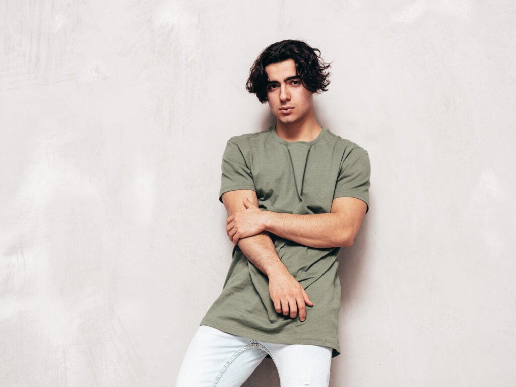 Wide range of men’s wear including T-shirts, polos, and hoodies.